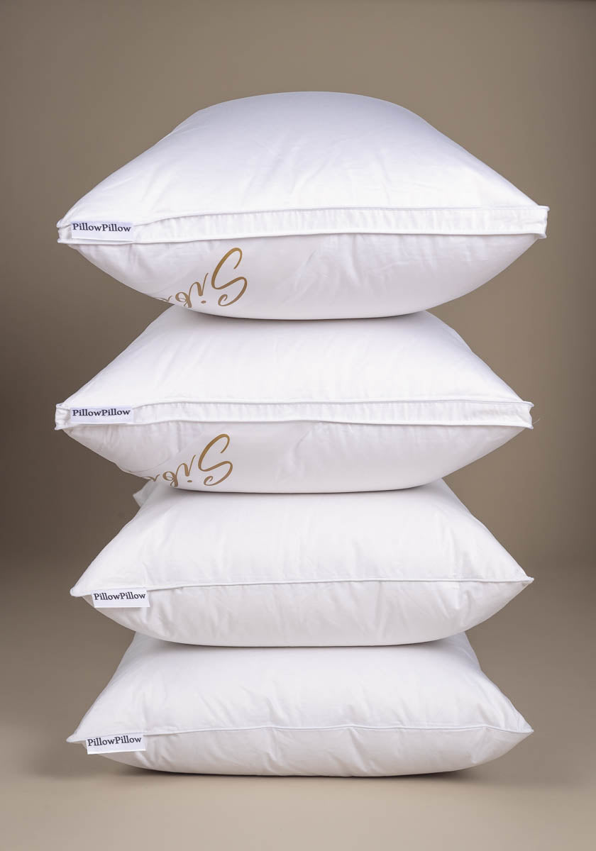 500TC sateen, Siberian goose down pillow, and luxury hand-stitched White Goose Down duvet. Our ultimate in softness & elegance.